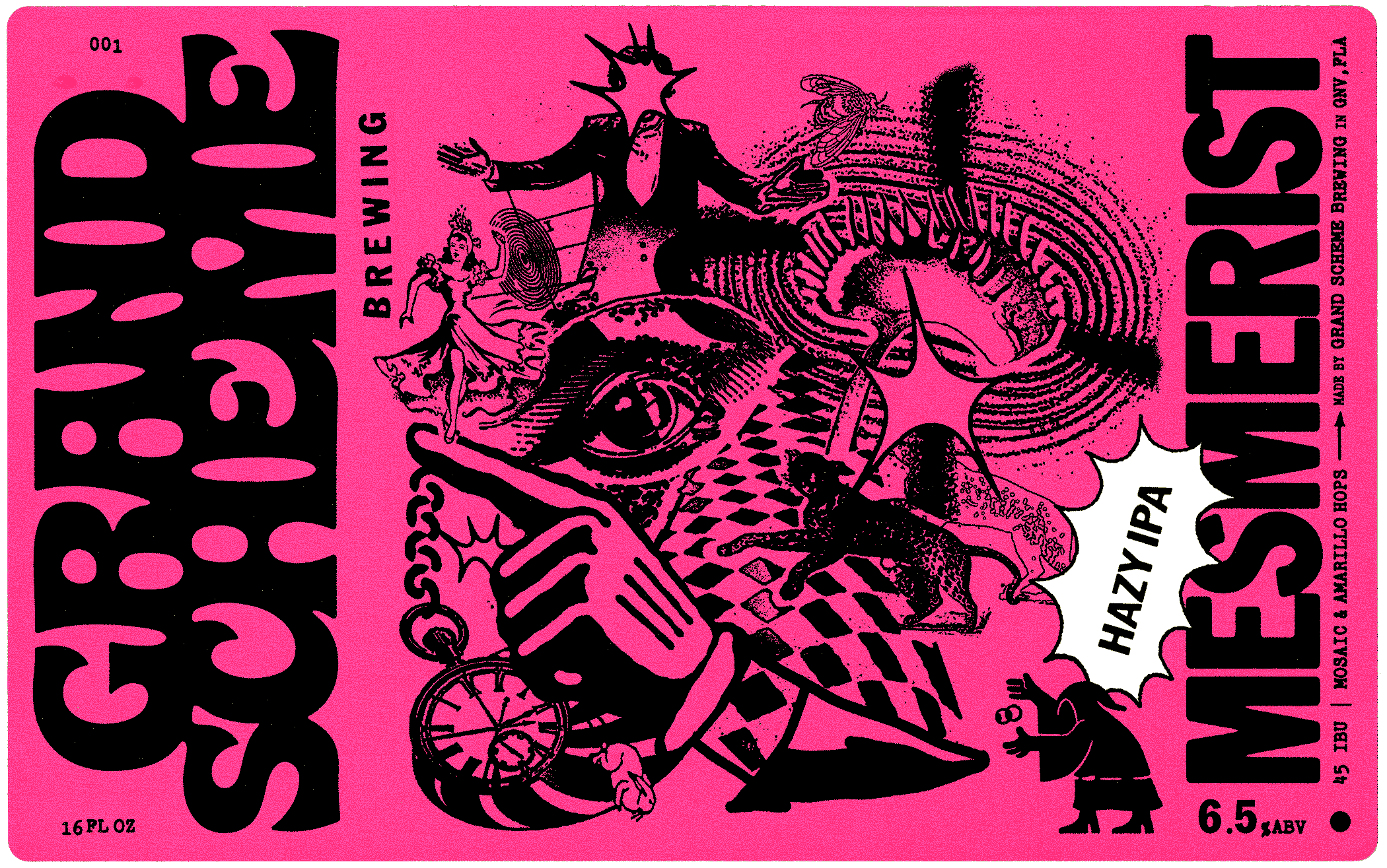 Identity, packaging design, and ongoing creative direction for Grand Scheme Brewing; A taproom and brewery in Gainesville, Florida. A direct response to status quo beer culture, and a screwball homage to the American dream. The GSB Brand is inspired by spectacle, magic, and propaganda. It’s informed by conspiracy pamphlets, religious tracts, punk flyers, counter-culture DIY zines, alt-comix, and obscure found print media.